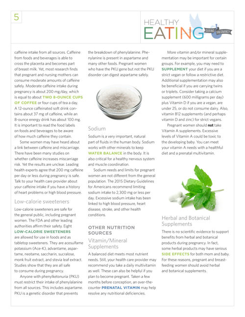 Folic Acid for the normal development of your babys brain skull and spinal cord. No extra calories needed. Home PregnancyHub Being pregnant Nutrition in pregnancy How much extra should I eat in pregnancy.