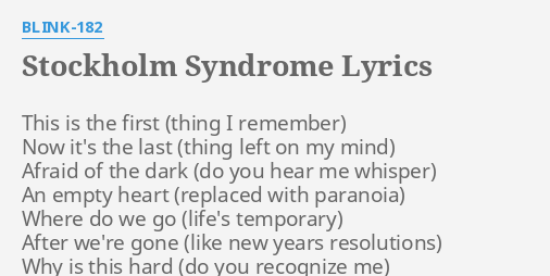 Stockholm syndrome lyrics blink 182. My dearest Ive missed you very very much since that last night we were together and Ill hold that night especially in my memories for years to come. Things dont look so good on that subject. The Lyrics for Stockholm Syndrome by Blink-182 have been translated into 9 languages This is the first thing I remember Now its the last thing left on my mind Afraid of the dark do you hear me whisper.