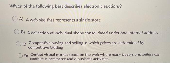 Which of the following describes e-commerce. Which of the following describes e-commerce. Get the answers you need now.