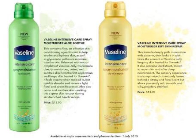 Vaseline Spray moisturizer has a non-greasy non-sticky formula to leave skin soft and fresh.